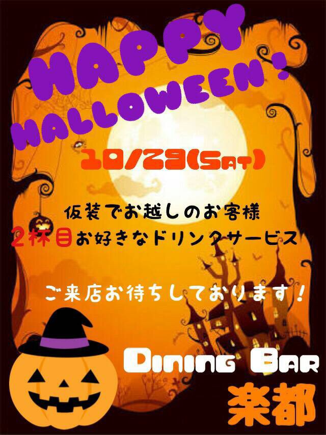 今週土曜日、仮装でご来店のお客様には「2杯目ドリンクサービス」しまーす。