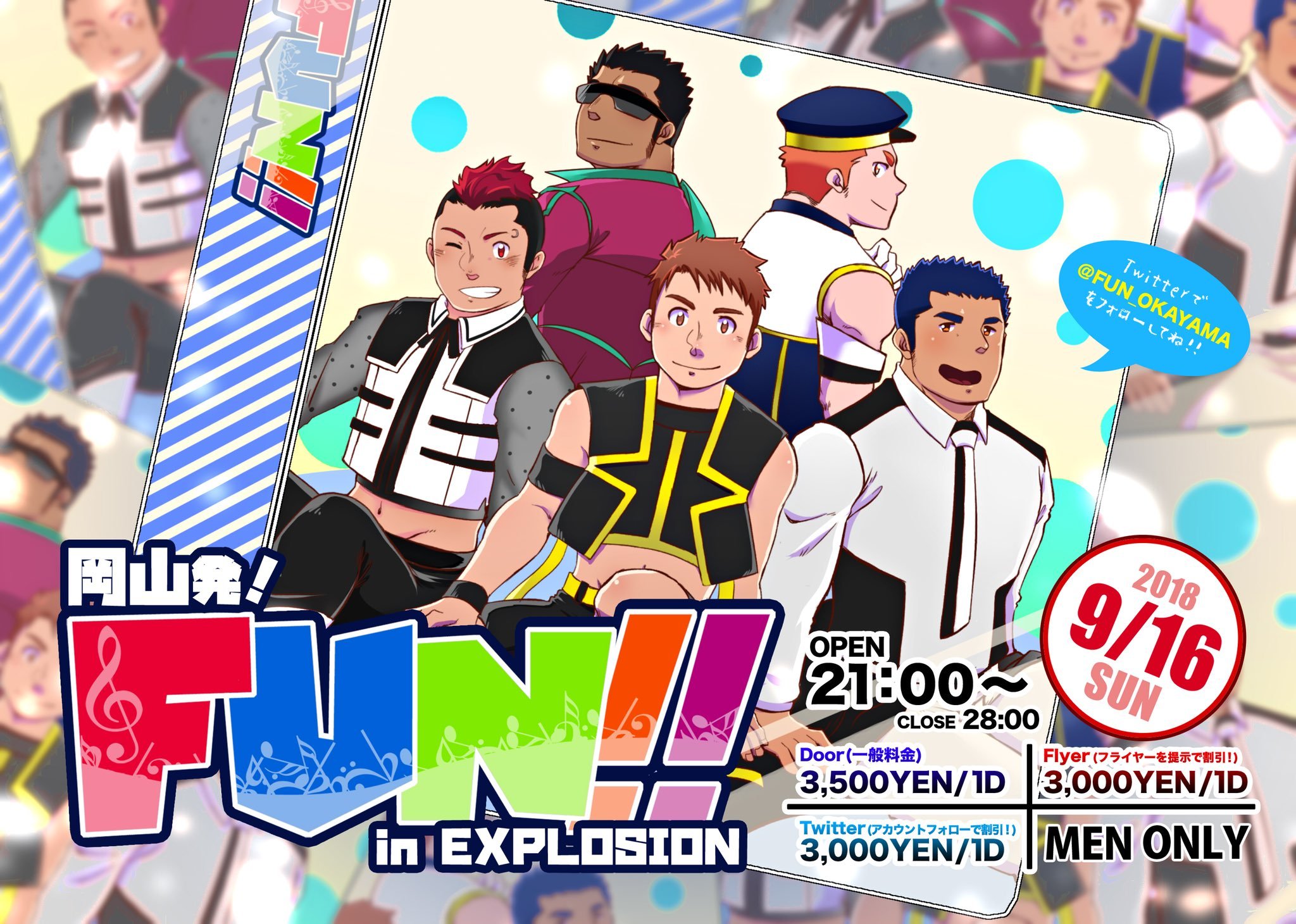 今日は岡山からのイベント【FUN!!】が堂山EXPLOSIONで開催なので楽しみ♪