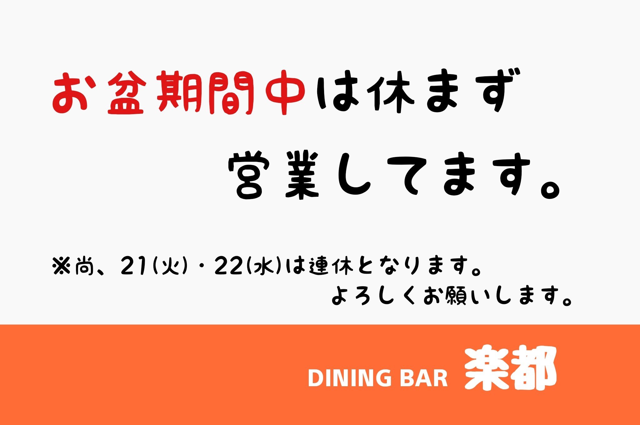 お盆期間中は休みなしで営業してます(マコト)