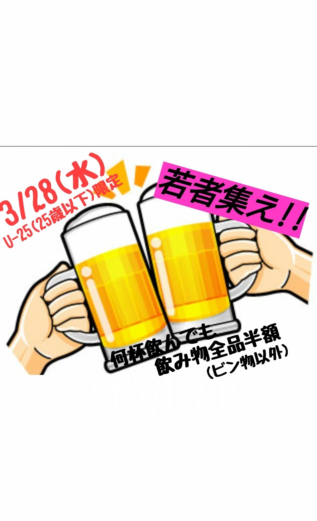 特に今日は、25歳以下の皆さんは【ドリンク全品半額】