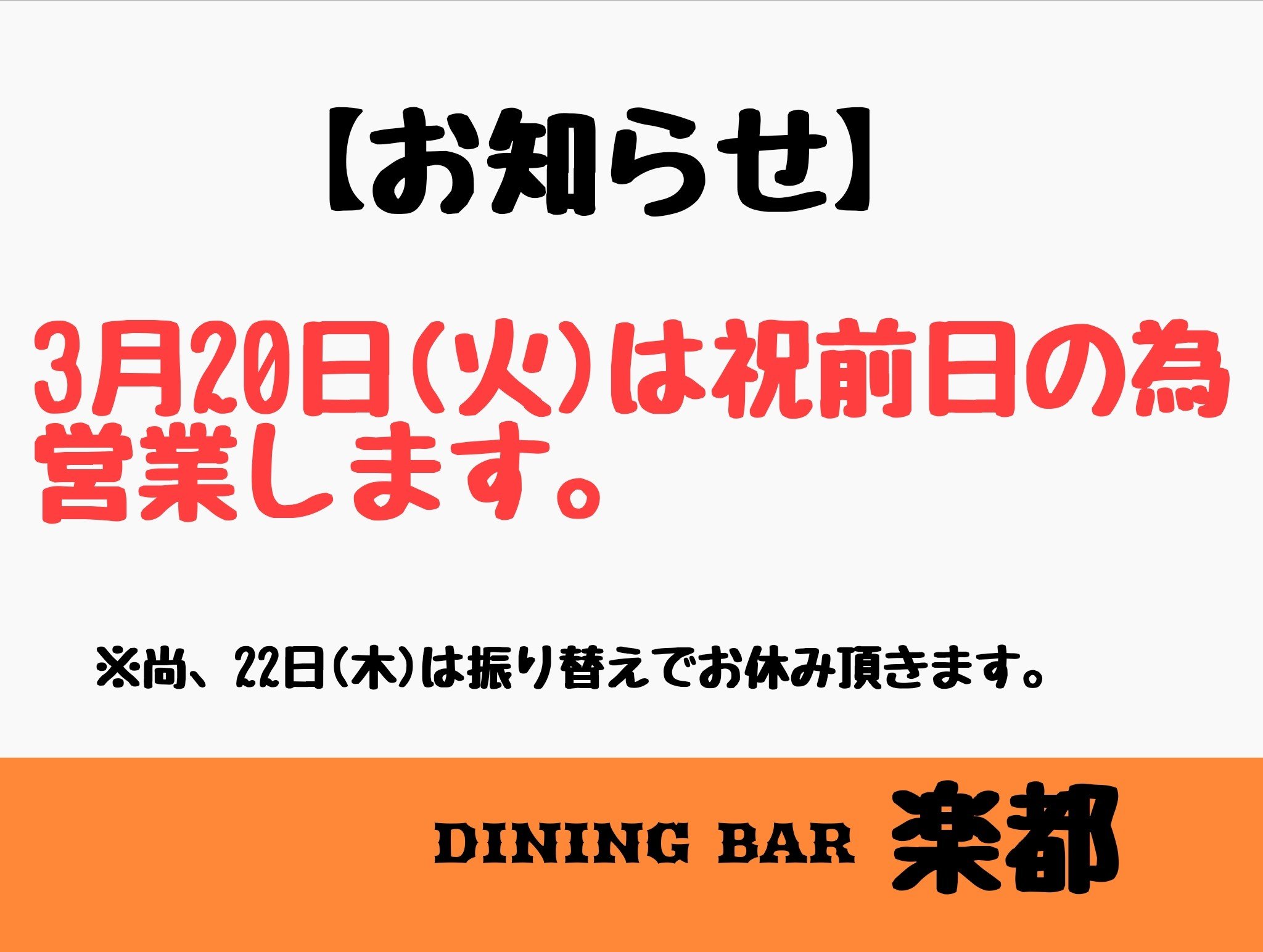 3/20(火)は営業します(マコト)