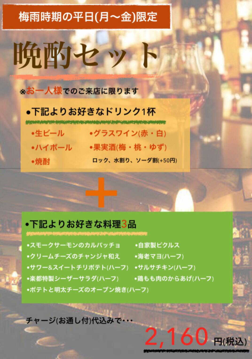 さて、楽都では8日(水)~梅雨時期限定【晩酌セット】スタートいたします!