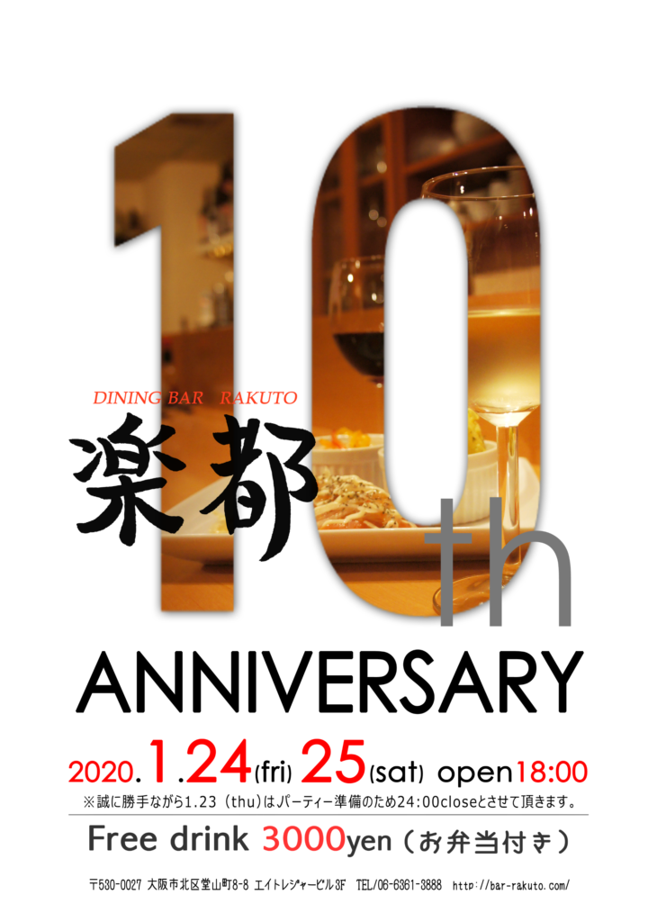 ダイニングバー楽都10周年パーティー。