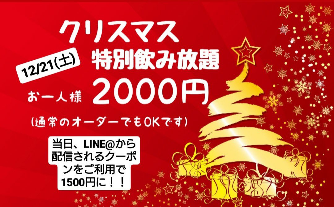 【12/21(土)は特別飲み放題あります(通常のオーダーも可)】