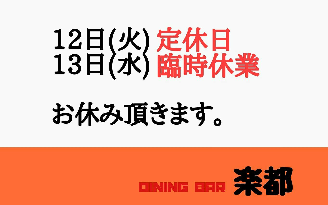 13日(水) 臨時休業