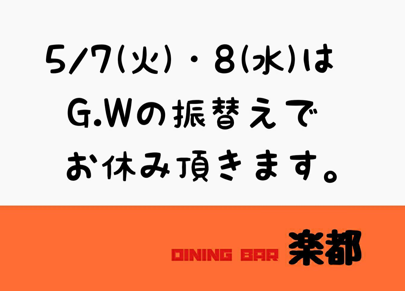また、5/7(火)・8(水)は連休となりますのでそちらもよろしくお願いします。